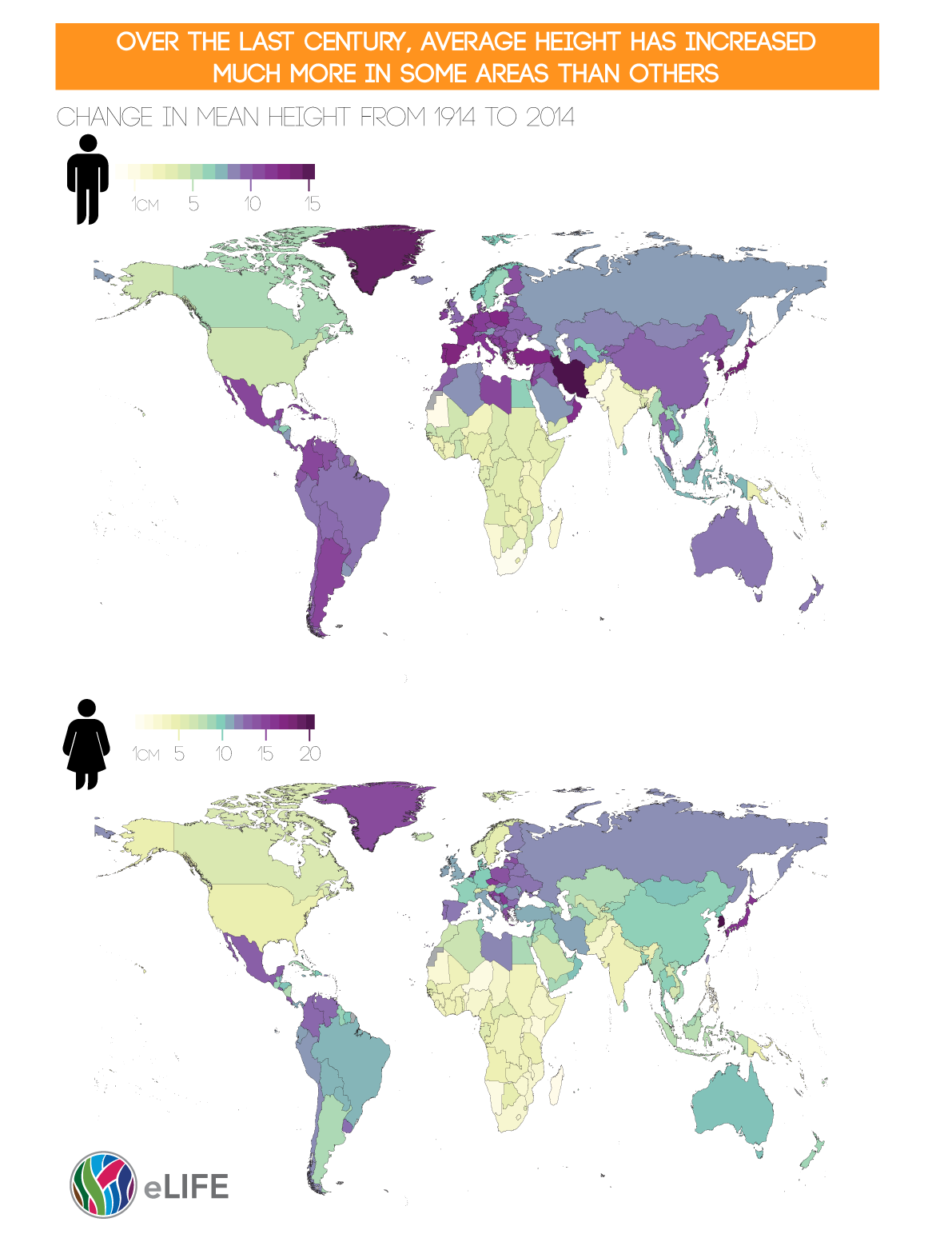 L’articolo parte da un semplice confronto di dati. Scientifico. L’altezza della popolazione mondiale dal 1914 al 2014. Lo studio è stato condotto da 800 scienziati in collaborazione con l’OMS.